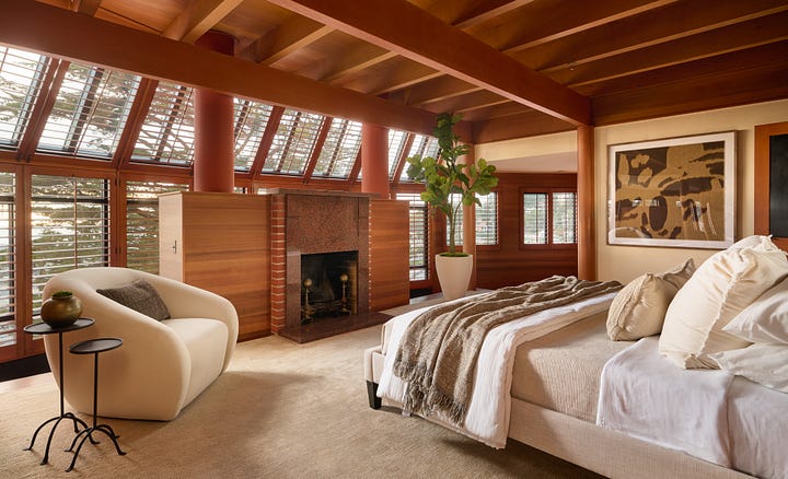 Perched on a hill high above the city, the home was commissioned in the late 1960s and designed by the architect Robert V. Arrigoni, co-founder of BAR Architects, and best known for his work on the Lucasfilm campus, Skywalker Ranch.